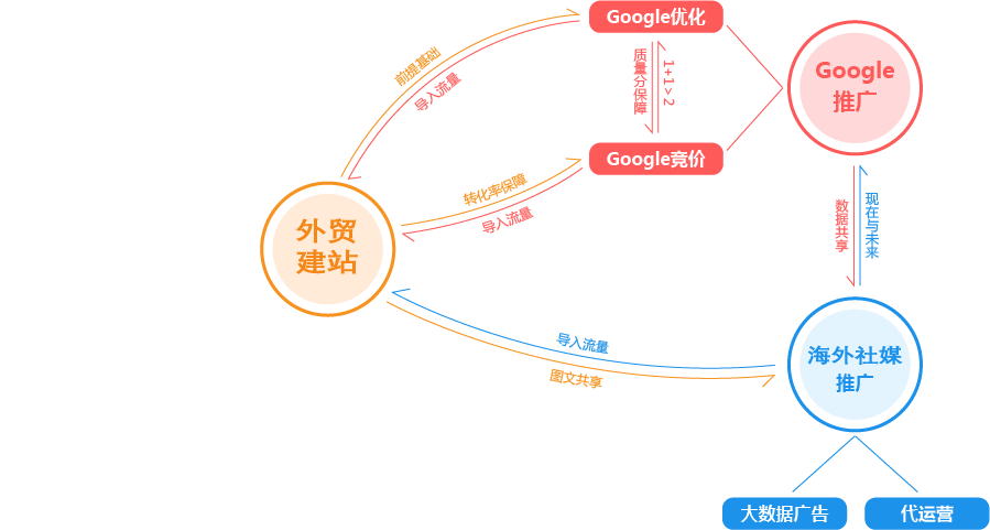 宁波外贸推广公司为您提供全面的“整合”方案,为您的企业提供全生命周期的精细化服务和咨询。为此,我们搭建了从广告投放到SEO优化,从内容运营到网站开发,从品牌策划到电商运营的近100人的团队,组成了一家集全球渠道资源、人才资源、技术资源为一体的数字营销机构,为您一站式解决出海难题,实现品牌全球推广!